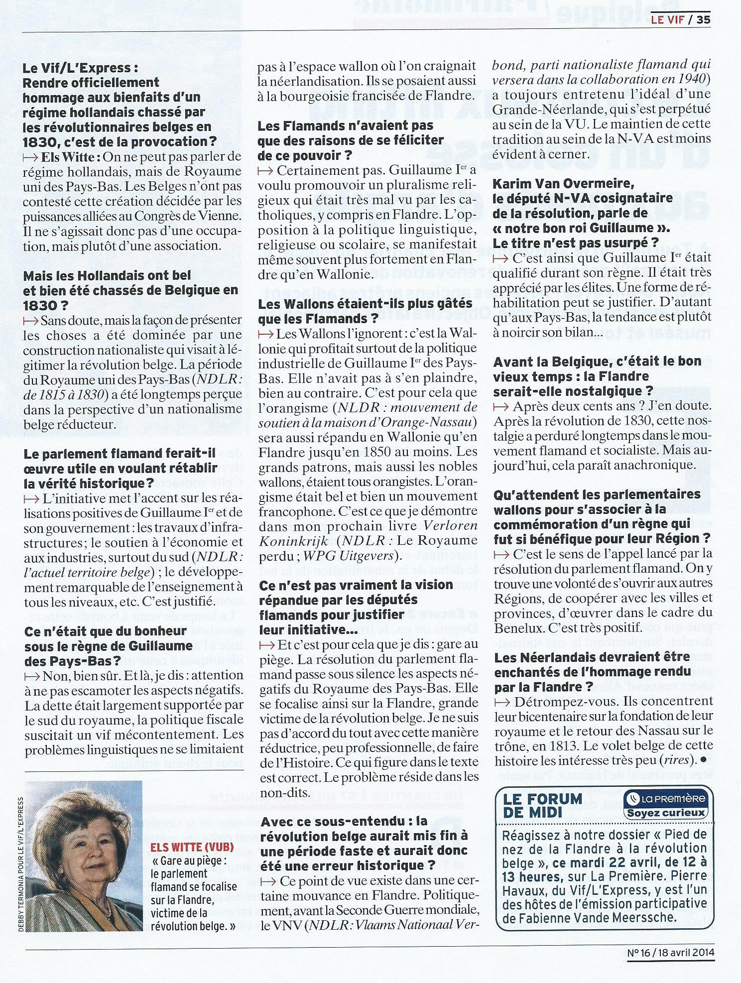 Cela dit, en 1830, le petit peuple de Flandre fut trahi par ses représentants politiques tant catholiques que libéraux tous fransquillons (une aubaine pour les thèses de la NVA et VB). N’ oublions pas non plus la haine de l’Eglise catholique « belge » à l’encontre d’un roi hollandais calviniste.
