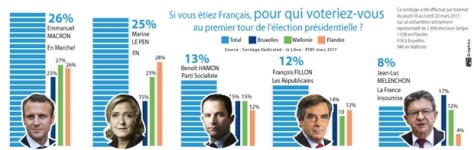 Des résultats finalement assez proches de ceux annoncés par les instituts de sondages français. Autre donnée similaire en Belgique et en France, Emmanuel Macron l’emporte contre tous ses adversaires au second tour. Il distancie Fillon de 36% (68% – 32%) et enregistre le même score face à Hamon que face à Marine Le Pen (62% – 38%).