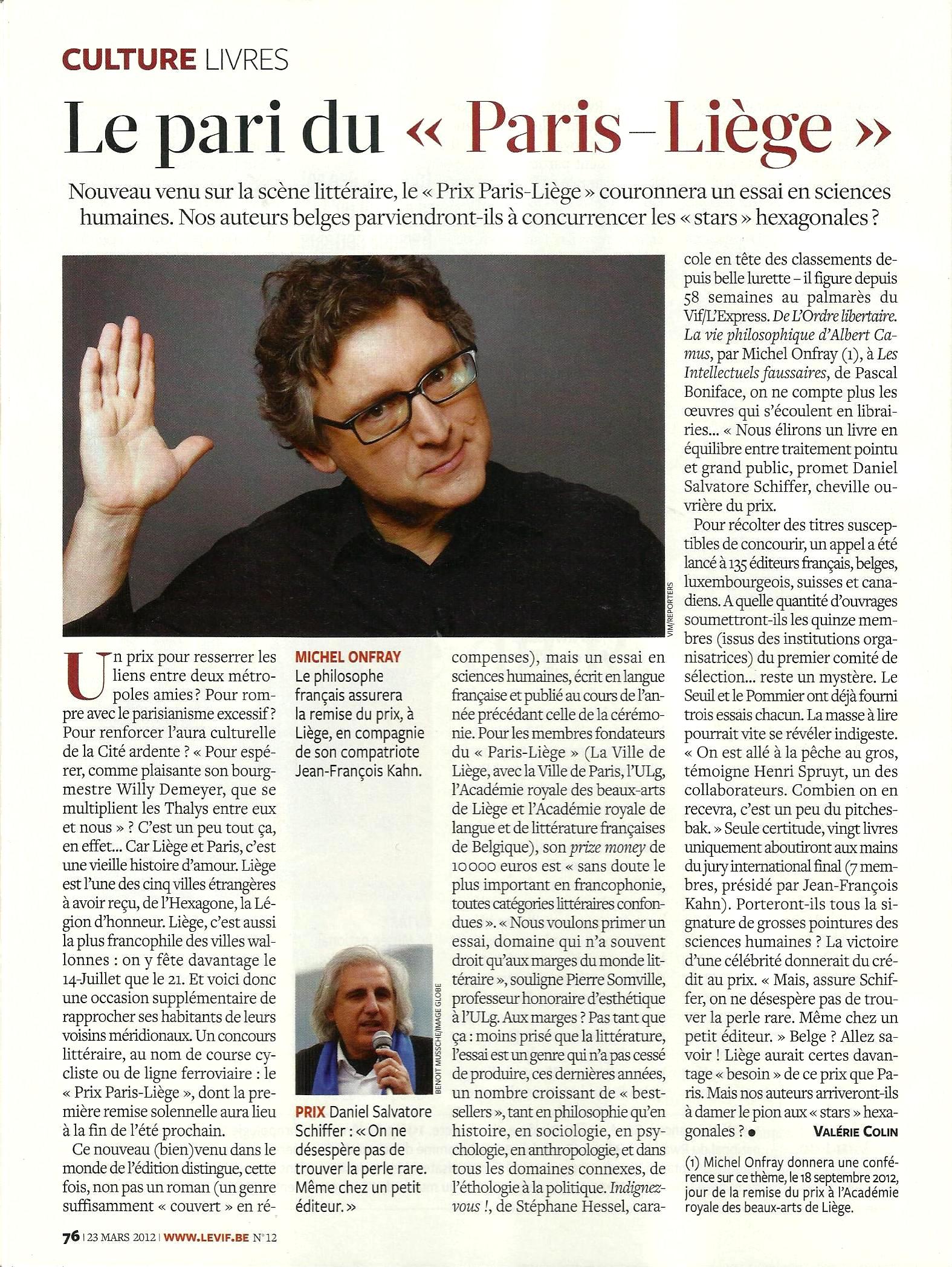 Retenez donc ceci : Paris-Liège, c’est désormais un important prix littéraire organisé conjointement par la Ville de Liège et la Ville de Paris. Le Vif/L’Express revient sur cette information communiquée il y a dix jours par la presse quotidienne. Nous reproduisons ici l’article de Valérie Colin.