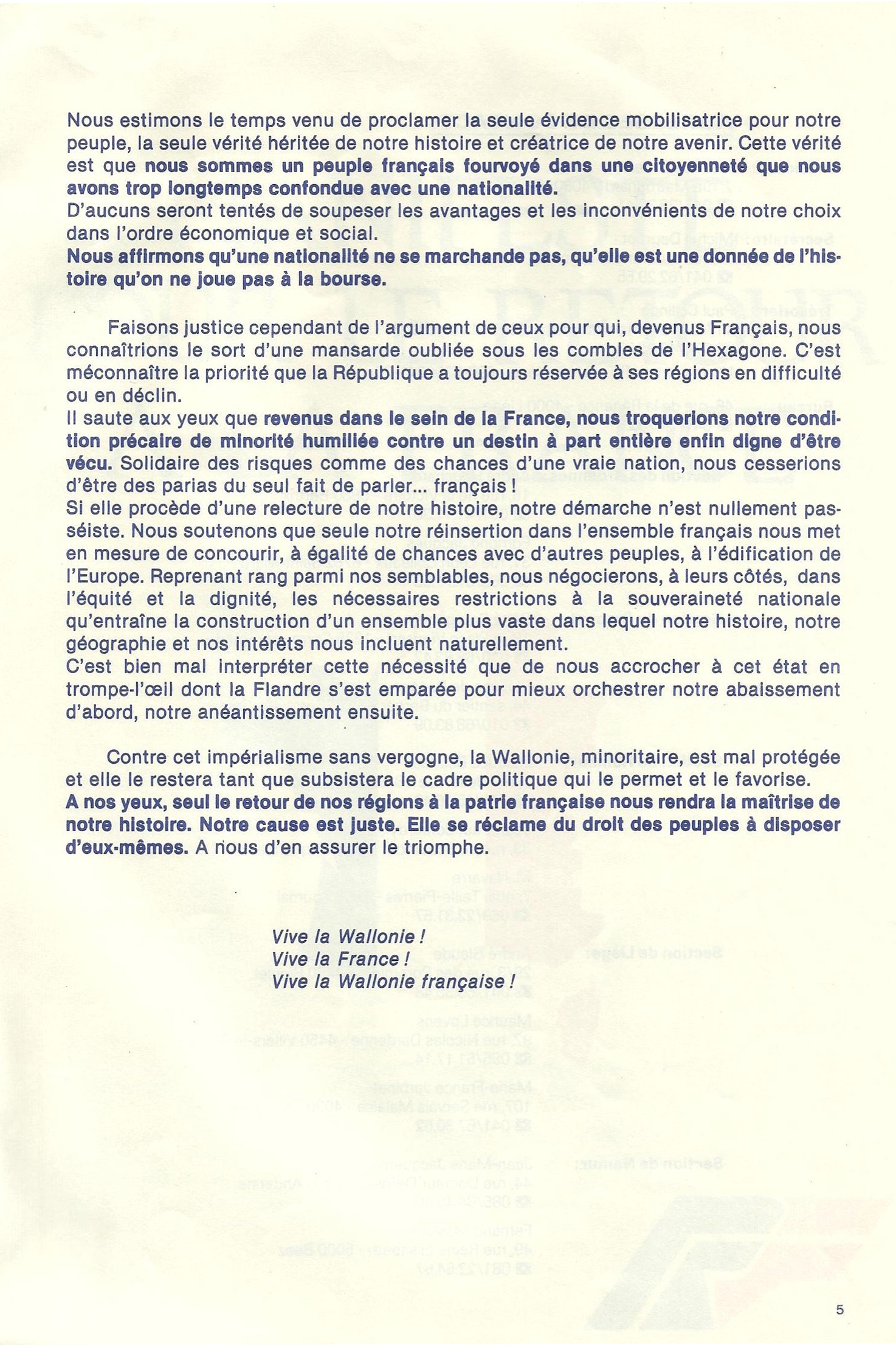 Il n’entre pas dans les intentions de l’A.W.F., mouvement pluraliste, de prendre parti pour l’un ou l’autre candidat.